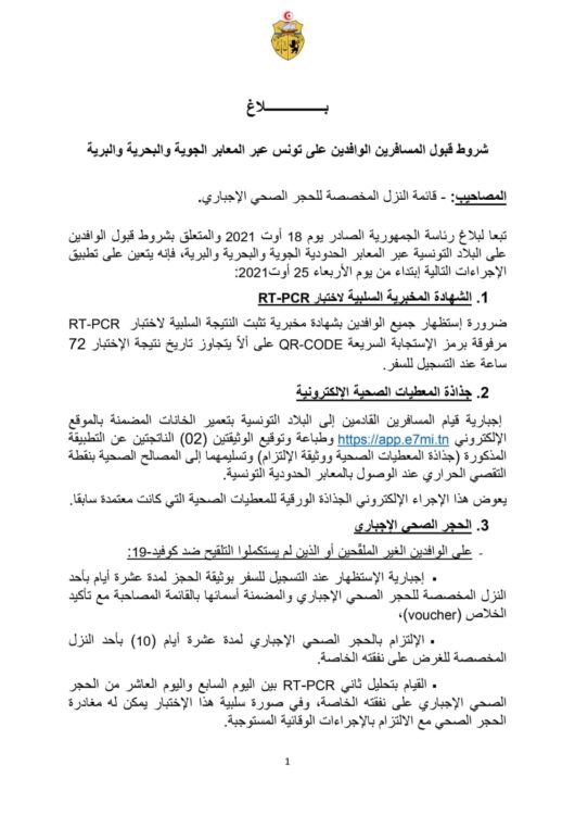 #Covid19 #Tunisie 🇹🇳nouvelle mise à jour au 24/08/2021 des conditions d’entrée sur le territoire tunisien (qui changent pour les non-vaccinés à partir du 25/08) et les mesures sanitaires appliquées en Tunisie → https://t.co/SdpVSEnDAQ pic.twitter.com/jfjrodHoCn